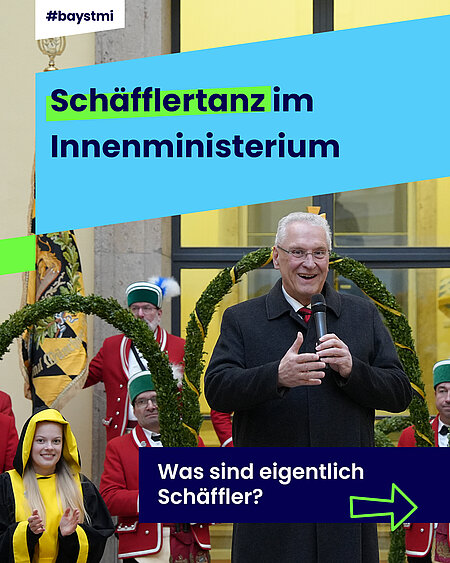 Schäfflertanz im @baystmi 🎵 Gelebte Münchner Stadt- und Handwerkstradition 😍 Auf Einladung von #Bayern|s Innenminister Joachim Herrmann hatten wir heute hohen Besuch und durften beim traditionellen Münchner Schäfflertanz zuschauen. 🗨️„Wir sind stolz darauf, dass die Schäffler uns im Odeon ihren Besuch abstatten. Gehört ihr Tanz doch zu den ältesten und bekanntesten Bräuchen Münchens“, so der Minister.Wissenswertes rund um den Tanz der Schäffler: 🤔 🔹Das ist ein historischer Zunfttanz der Fassmacher, der seit Jahrhunderten als Zeichen von Gemeinschaft, Zuversicht und Lebensfreude gepflegt wird.🔹Der Schäfflertanz findet nur alle sieben Jahre statt.🔹Es handelt sich dabei um eine festliche Choreografie in historischen Trachten.Kanntest du die Tradition des Schäfflertanzes? ⤵️