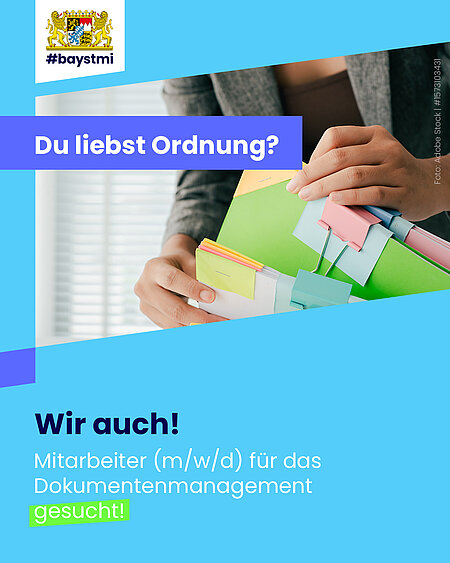 📂 Ordnung schaffen. Zukunft mitgestalten. Du arbeitest strukturiert, gewissenhaft und gerne im Team? Dann werde Teil des Bayerischen Staatsministeriums des Innern, für Sport und Integration! Wir suchen Mitarbeiterinnen und Mitarbeiter (m/w/d) für das Dokumentenmanagement. Mit einem sicheren Arbeitsplatz, modernen Arbeitsbedingungen und echter gesellschaftlicher Relevanz im Herzen Münchens. ✔️ Unbefristet & krisensicher ✔️ Flexible Arbeitszeiten & Homeoffice ✔️ Attraktive Vergütung & Zusatzleistungen ✔️ Sinnstiftende Aufgaben für Bayern 👉 Jetzt bewerben und Verwaltung von morgen mitgestalten! 🔗 Weitere Infos auf unserer Karriereseite bzw. über den Link in der Bio.