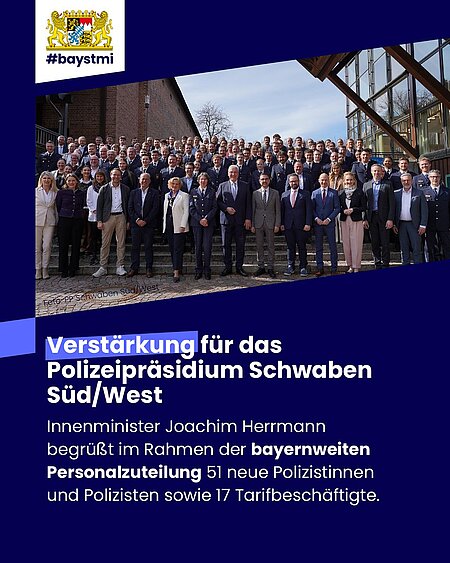Das Polizeipräsidium Schwaben Süd/West wächst um 88 neue Mitarbeiterinnen und Mitarbeiter. Neben 71…
