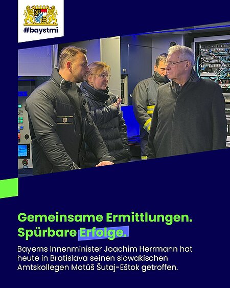 Gemeinsame Ermittlungen. Spürbare Erfolge: Herrmann trifft slowakischen Amtskollegen Šutaj-Eštok 🤝 Bayerns Innenminister @joachim.herrmann.csu hat sich heute in Bratislava mit seinem slowakischen Amtskollegen Matúš Šutaj-Eštok @ministerstvo_vnutra_sr getroffen. Bei einem Besuch an der slowakisch-ungarischen #Grenze ging es u. a. um die erfolgreiche polizeiliche Zusammenarbeit sowie um Grenzkontrollen auf der Westbalkanroute und den Schutz der #EU-Außengrenzen. ✅ Ermittlungserfolg 👮♀️ 👮♂️ gegen Schockanrufer: Ein internationales #Callcenter wurde durch die gemeinsamen Ermittlungen mit der @policiaslovakia und @europol.eu, aufgedeckt und zerschlagen. 💥📞Bereits vor der Festnahme wurden zahlreiche Betrugsversuche verhindert. 🛑 ✅ Ausbau der Zusammenarbeit gegen grenzüberschreitende #Kriminalität wie Schmuggel, Menschen-, Drogen- und Waffenhandel sowie bei hybriden Bedrohungen. 🎮🛩️ ✅ Gemeinsam gegen illegale Migration: Schutz der Außengrenzen und wirksame Grenzkontrollen entlang der Westbalkanroute bleiben entscheidend. ⛔ 💬"Im Kampf gegen die illegale Migration haben wir ein gemeinsames Ziel: Wir wollen sie weiter zurückdrängen“, so #Herrmann. 👉Mehr Infos: Link in Bio ⤴️