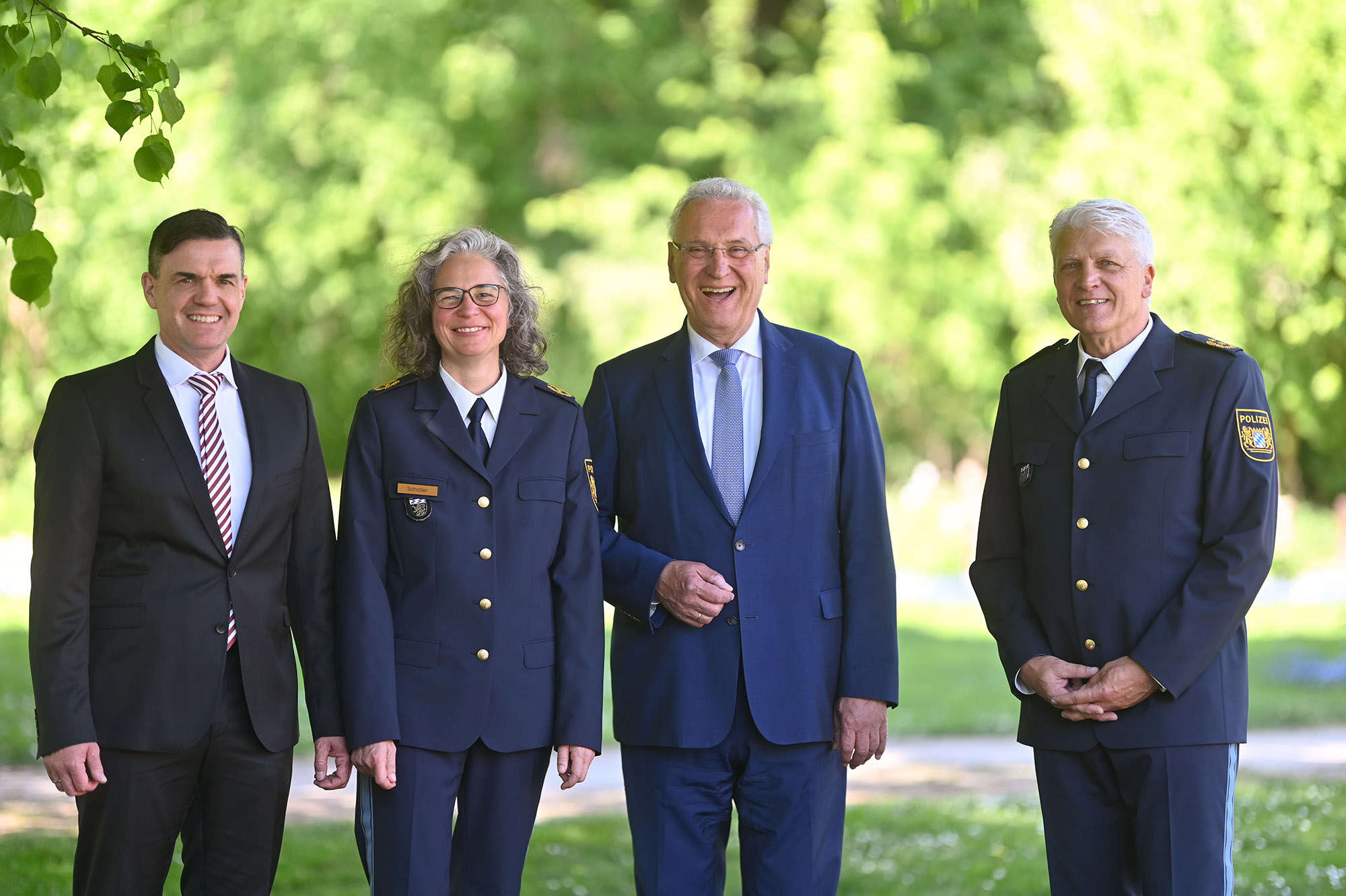 Bayerns Innenminister Joachim Herrmann hat bei einem feierlichen Festakt den Präsidenten Günther Gietl in den Ruhestand verabschiedet und die bisherige Vizepräsidentin Kerstin Schaller in das Amt der Polizeipräsidentin eingeführt. Als neuer Vizepräsident folgt Dirk Schmidt, zuletzt Leiter des Kriminalfachdezernats 1 im Polizeipräsidium Schwaben Nord.