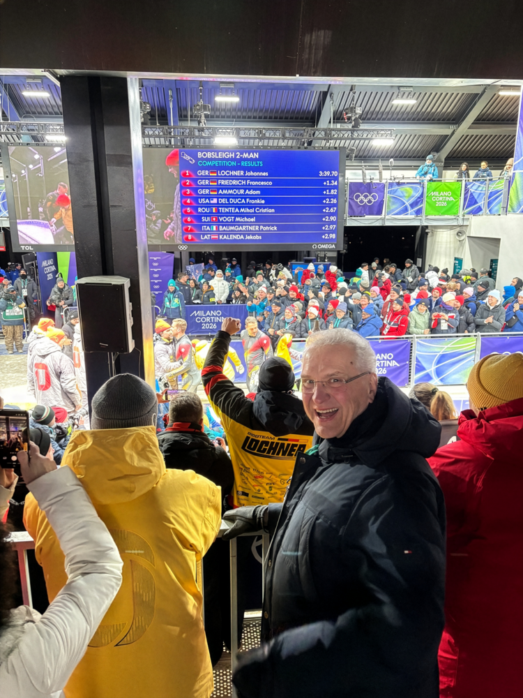 Bei den Olympischen Winterspielen in der Südtirol Arena in Antholz informierte sich Innen- und Sportminister Joachim Herrmann über den Ablauf der Wettkämpfe und die Organisation vor Ort. Er würdigte das große Engagement der Veranstalter und Einsatzkräfte, die einen reibungslosen und sicheren Ablauf der Spiele gewährleisten.