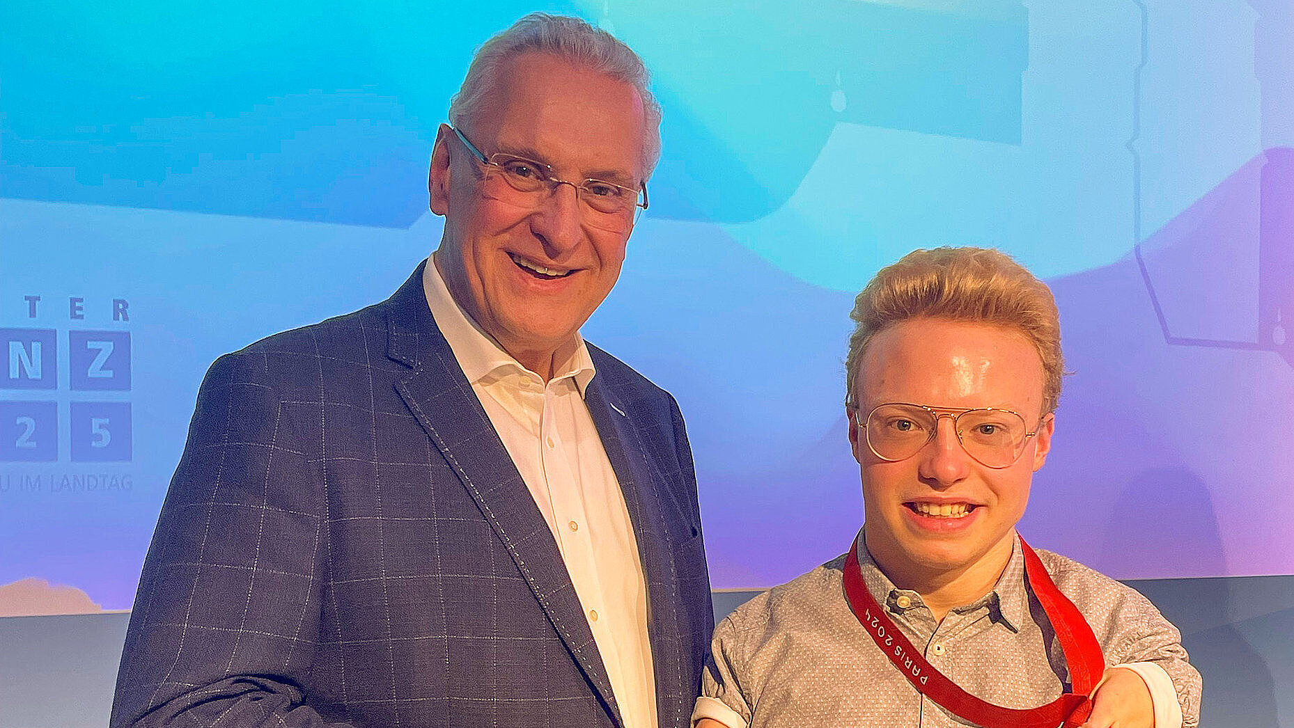 Paralympics-Sieger und Erlanger Spitzenschwimmer Josia Topf traf Innen- und Sportminister Joachim Herrmann am Rande der Klausurtagung im Kloster Banz. Mit großer Leidenschaft setzt sich Josia Topf für eine bayerische Olympia- und Paralympics-Bewerbung 2040 ein und träumt davon, einmal bei Spielen in heimischer Kulisse anzutreten.