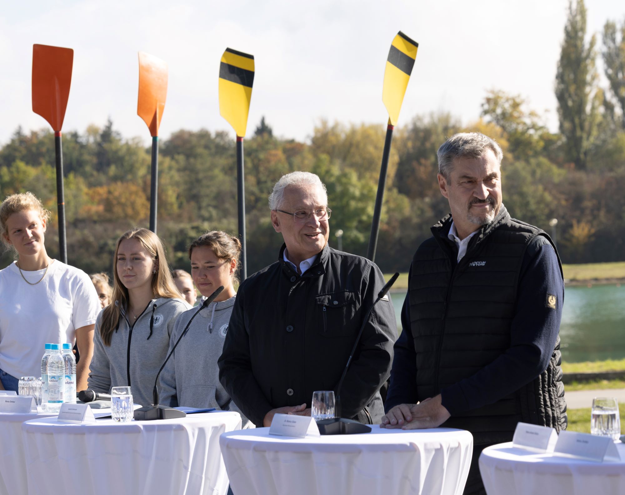 Bei einem gemeinsamen Besuch mit dem Bayerischen Ministerpräsidenten Dr. Markus Söder hat Sportminister Herrmann die herausragende Bedeutung der Ruder-Regattastrecke in Oberschleißheim für das Bewerbungskonzept für Olympische und Paralympische Spiele herausgestellt: „Die Regattastrecke ist eine unverzichtbare Spezialsportstätte für die Austragung Olympischer Spiele in München. Sie ist ein hervorragender Beweis für die nachhaltige Wirkung der Spiele auf die Sportlandschaft und darüber hinaus.“