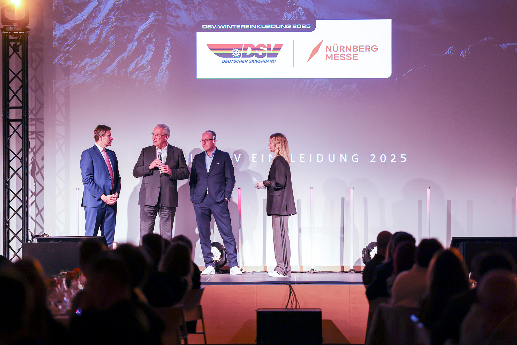Innenminister Joachim Herrmann bei der Präsentation der neuen Winterausrüstung der deutschen Ski-Nationalmannschaften in Nürnberg: Rund 50 hochwertige Bekleidungsstücke – von Funktionswäsche bis zum windkanalerprobten Rennanzug – sorgen für optimale Bedingungen im Wettkampf und Training.